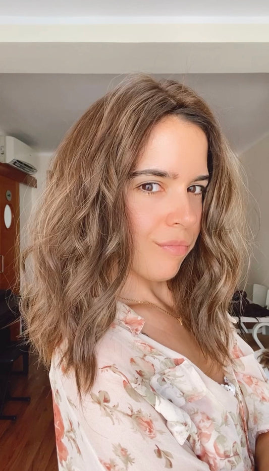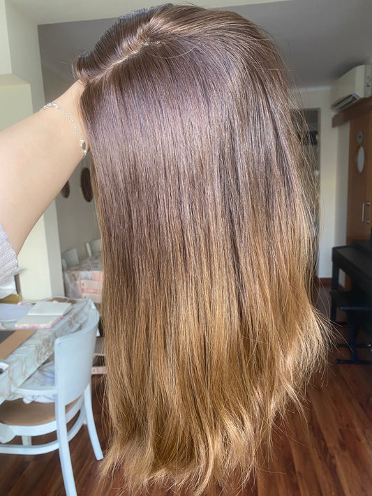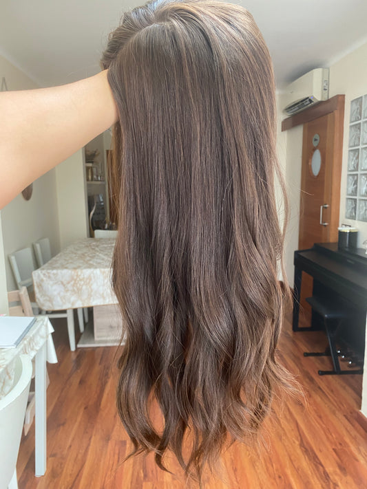 CASTAÑO CLARO CENIZA CON REFLEJOS SUTILES / 16" / 8x8 / Seda