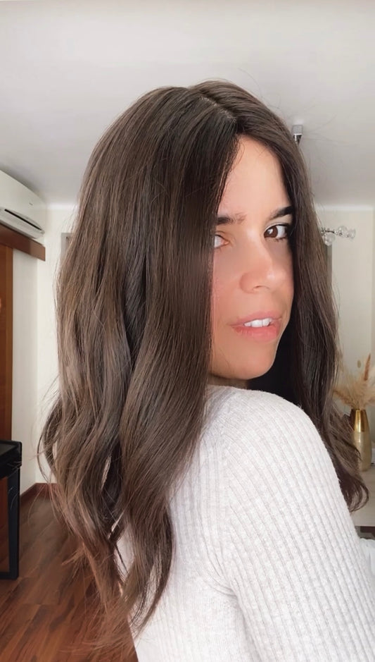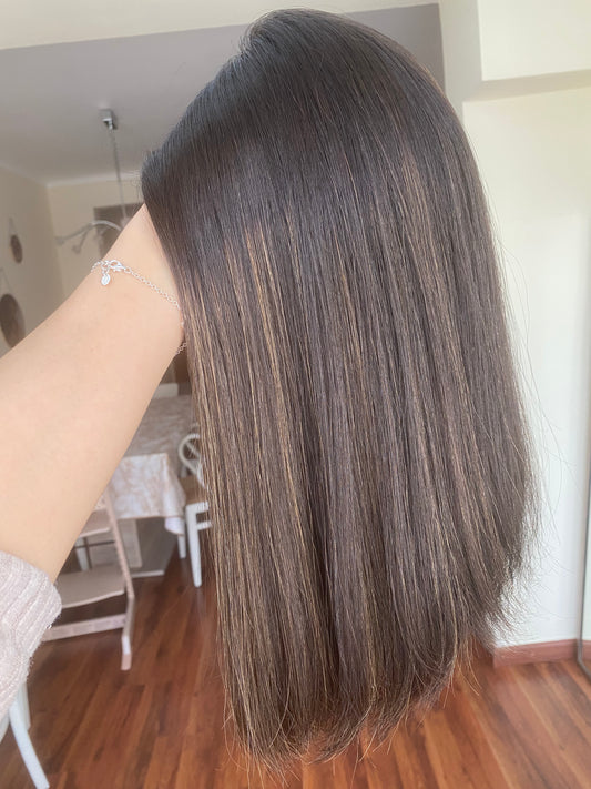 DARK BRUNETTE W/ HIGHLIGHTS / 16" / 8x8 / Silk Top