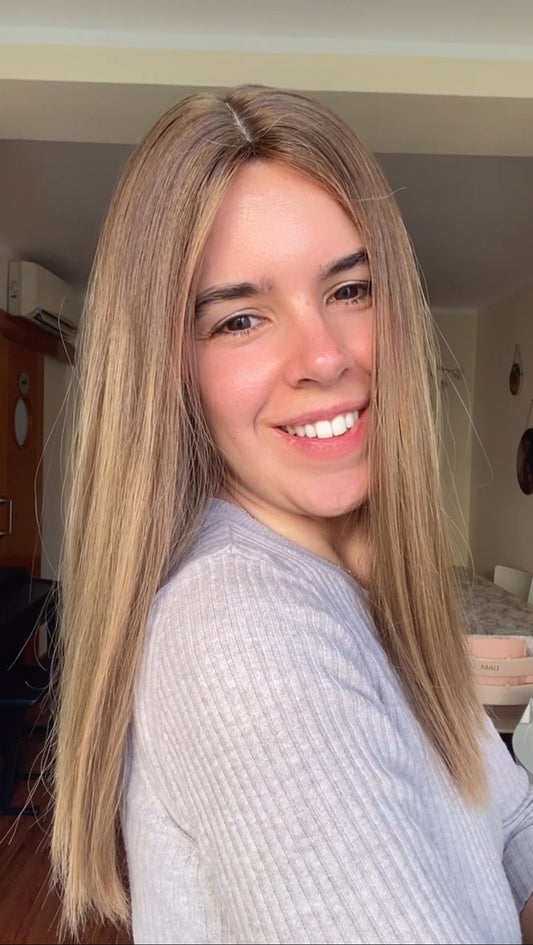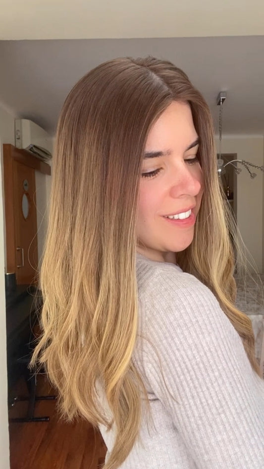 DIMENSIONAL ROOTED WARM BLONDE / 17" / 8x8 / Silk Top