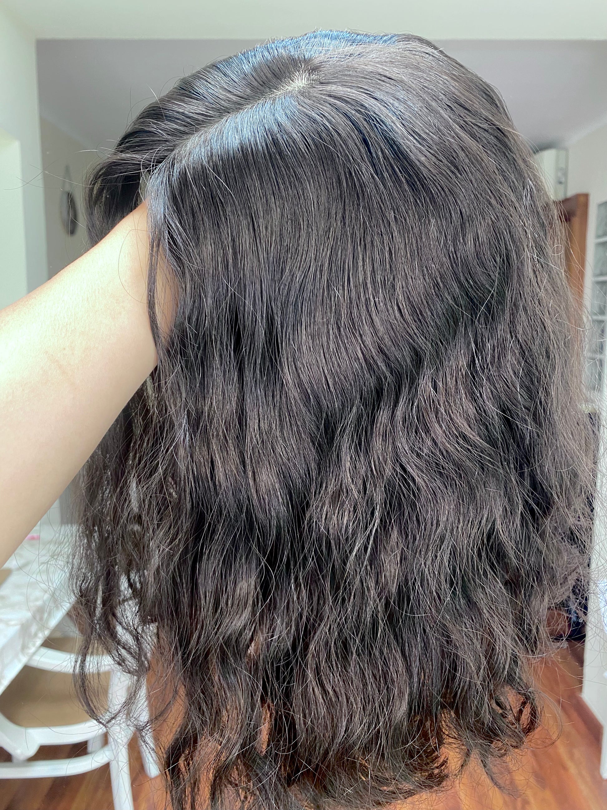 Color: Este es nuestro color más oscuro. Es un negro suave natural que en la luz solar directa parecerá de un tono castaño muy oscuro. Se puede oscurecer y aclarar por un/a especialista en cabello alternativo.