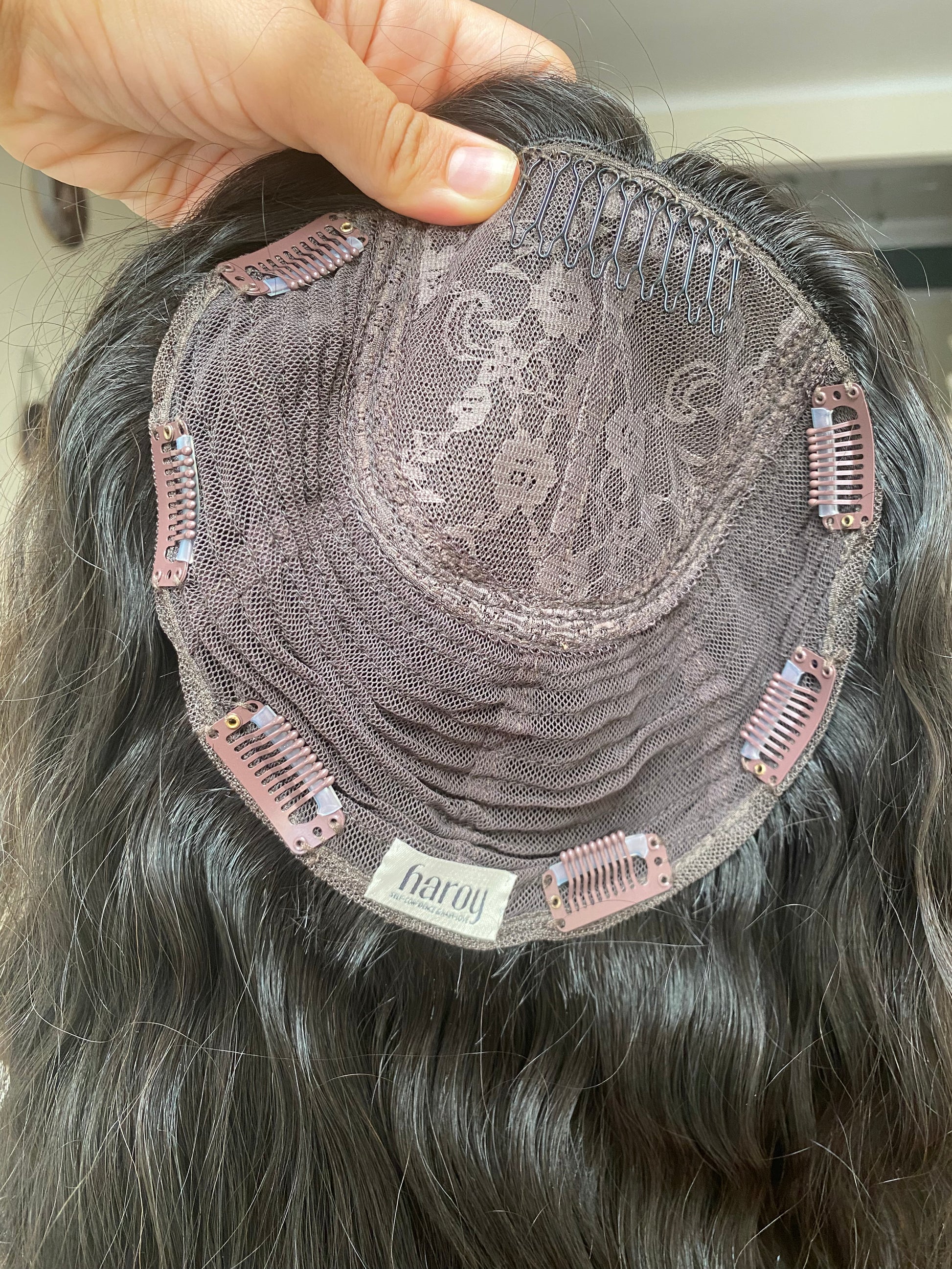 - 9x9" (23x23cm) – Nuestra gorra más grande, se asienta en un área donde suele haber más cabello biológico, lo que la hace súper cómoda de usar.